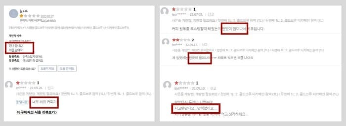 그랬더니 구입할 땐 좋은 후기만 보이던 것이 좋지 않은 후기도 보이기 시작했습니다. (그래도 좋다는 후기가 압도적입니다.)