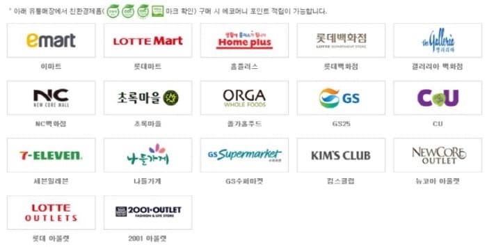 이 매장들에서 물건을 구입한다고 모두 적립이 되는 것이 아니라 매장안의 제품 중 아래의 표시가 되어 있는 제품을 구입할 때에 적립이 가능합니다.